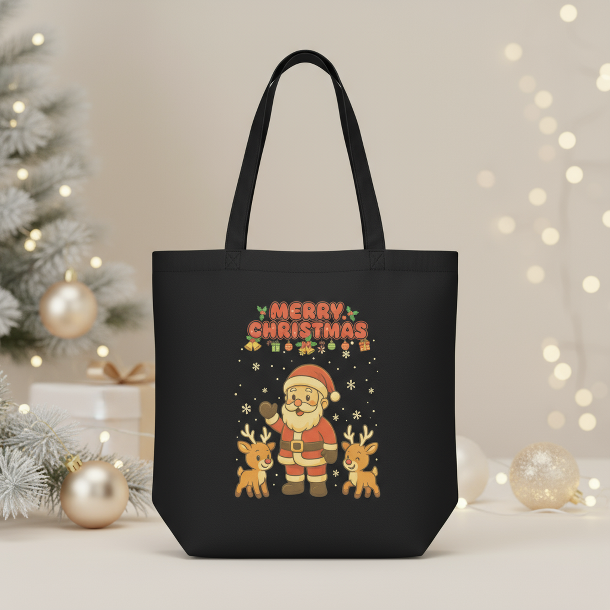 Christmas Tote Bag with Santa & Reindeer – Party-Ready Gift