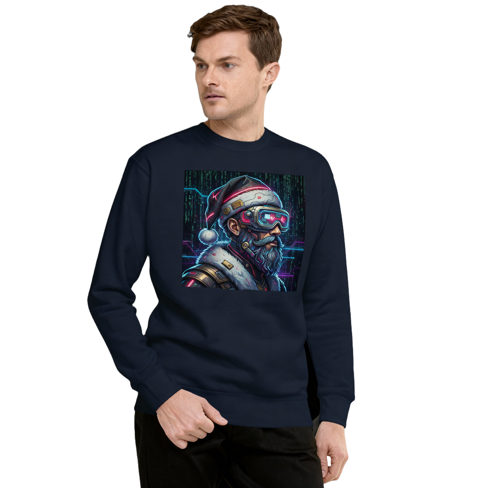 Cyberpunk Santa Christmas Sweatshirt | Neon Tech Santa Unisex Crewneck