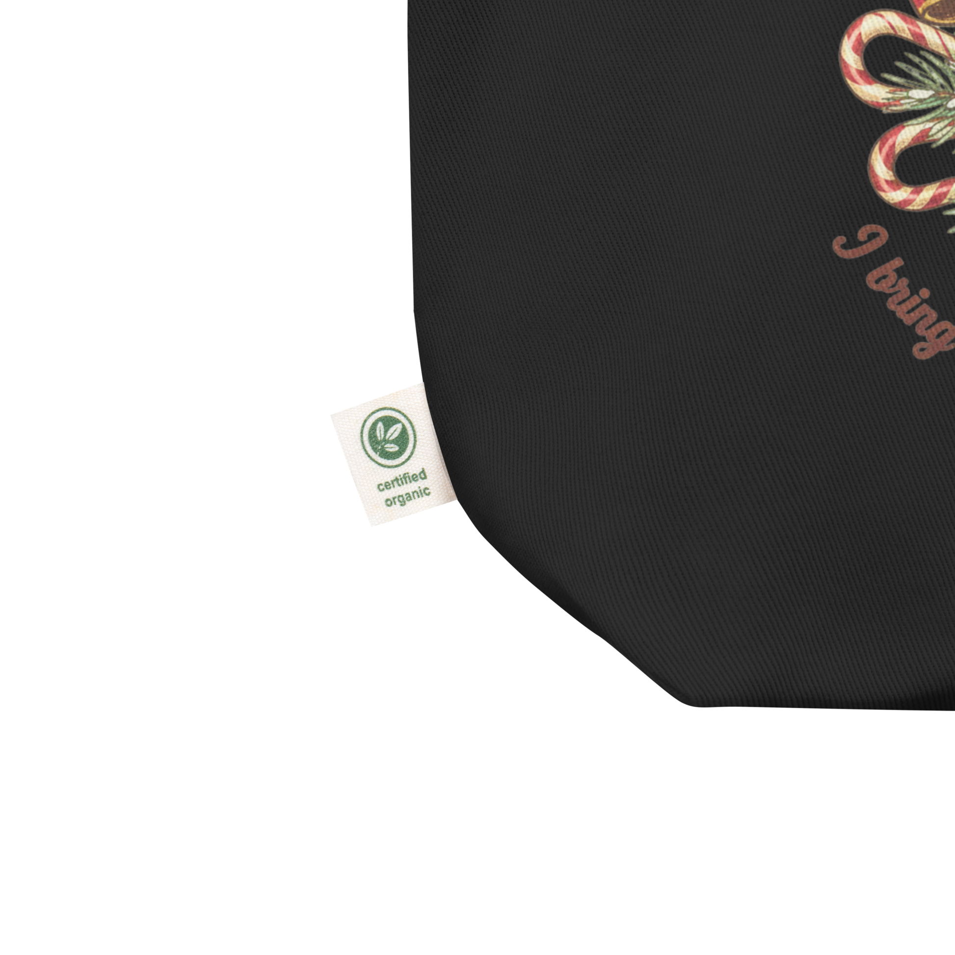 The black canvas keeps the art crisp and pairs with any coat or sweater, turning quick errands and commute days into little moments of cheer. I love that cheeky line—“I bring the glow, you bring the cheers”—because that’s the holiday pact: you handle the sparkle; your friends bring the good vibes.